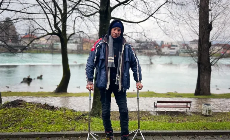 Hamid, who is originally from Morocco, aims to reach his son Ilyas in France, but he faces a problem: his knees. Two years ago, he said Bosnian police beat him and fractured his knee, leaving him permanently disabled.