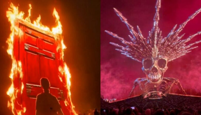 Videos and photos of the show flooded social media, featuring a massive CGI skeleton wearing a spiky crown made of horns and bones with flames behind it. One of the videos then fades to Zac Brown wearing a similar crown to the skeleton.