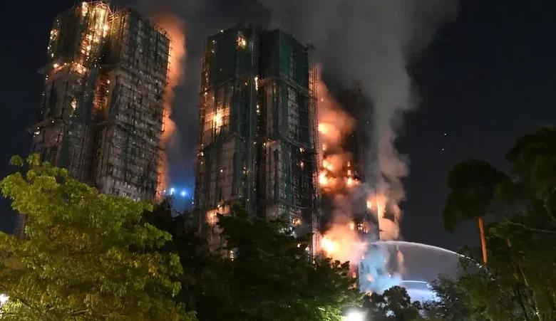 Huge flames first took hold on bamboo scaffolding on several apartment blocks of Wang Fuk Court, which contains nearly 2,000 flats in eight towers in the northern district of Tai Po and was reportedly undergoing estate-wide maintenance.