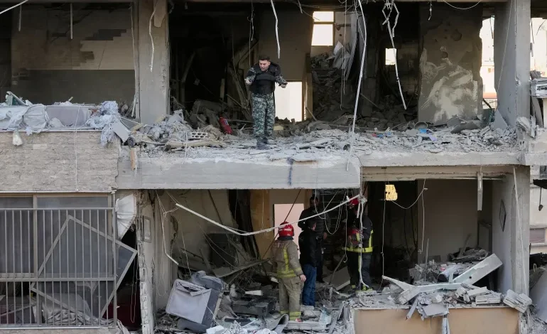 The strike took out two whole floors in a residential building, leaving the street below covered in glass, concrete and dust. The Lebanese Ministry of Health said four people were injured in the attack. Israeli media said the apartment was used by the Jama’a Islamiye (the Islamic Group), though the group denied that any of its members or offices were targeted.